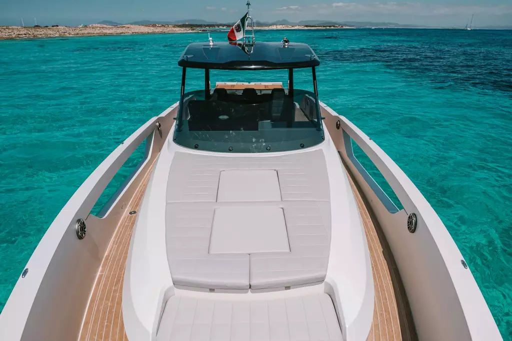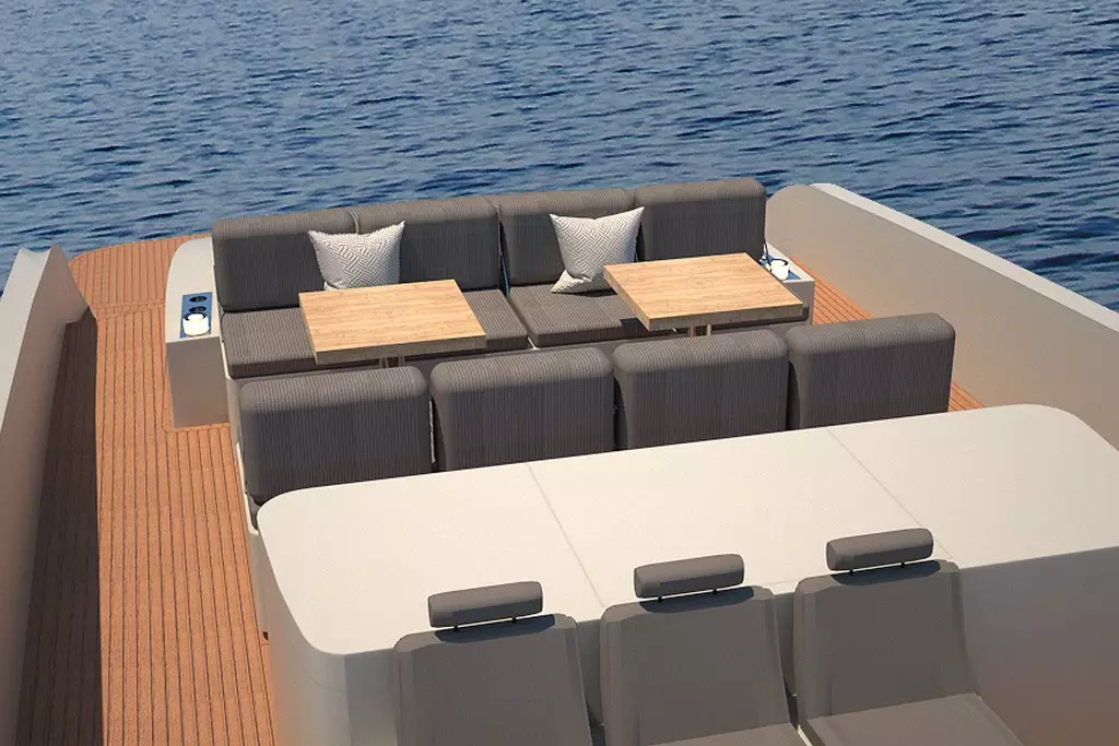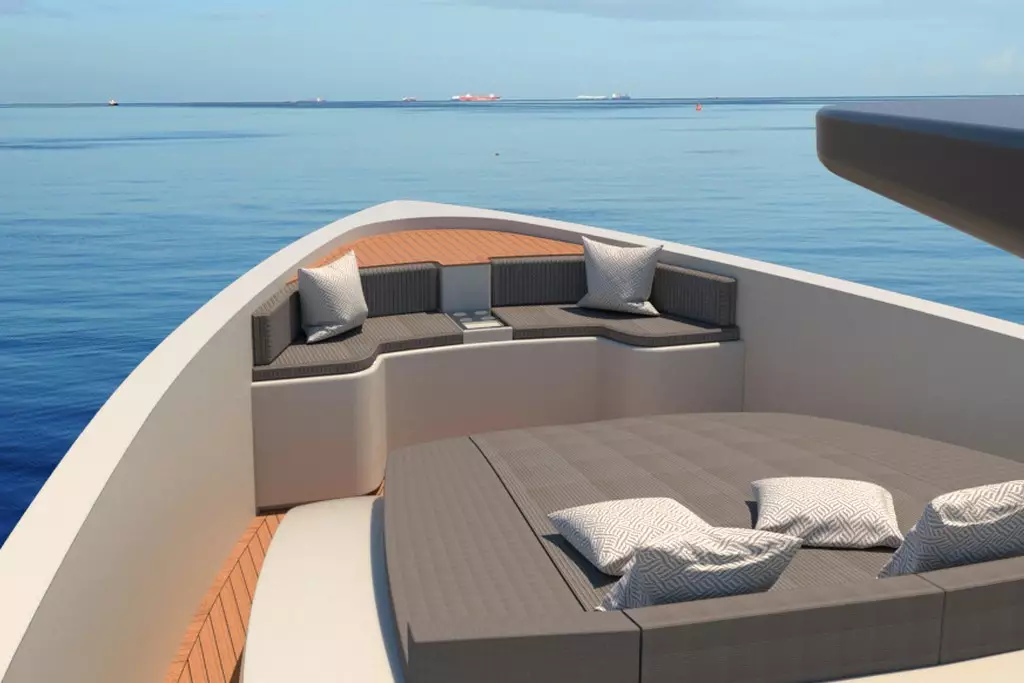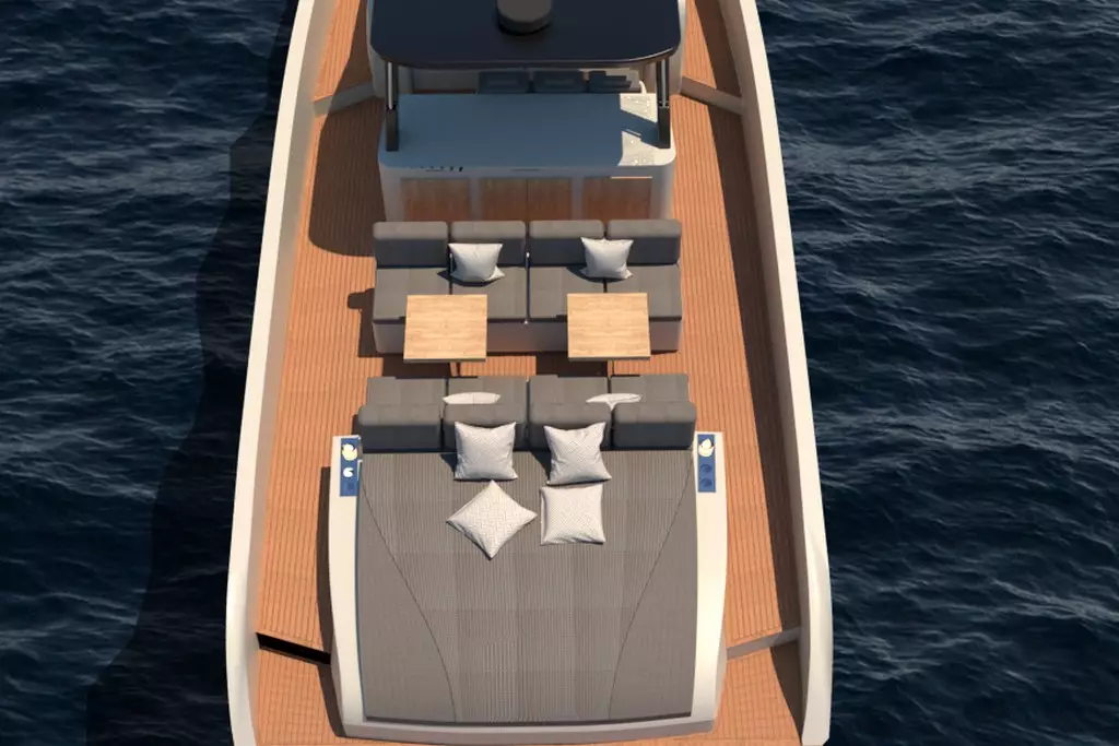 This 12.90m open boat is a real show stopper and making headlines across Europe. Designed with outboard options – or in a Volvo IPS inboard version, it has a sleek design, combined with huge spacious areas thanks to the design of 'hidden' outboard engines under the day bed.