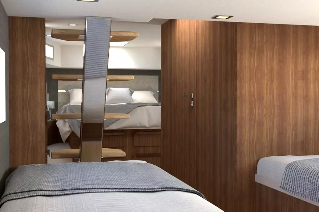 Below deck, featuring 3 cabins, 2 bathrooms and crew accommodation, the design has utilised all available space is a super-efficient way, allowing you to relax as hard as you like.