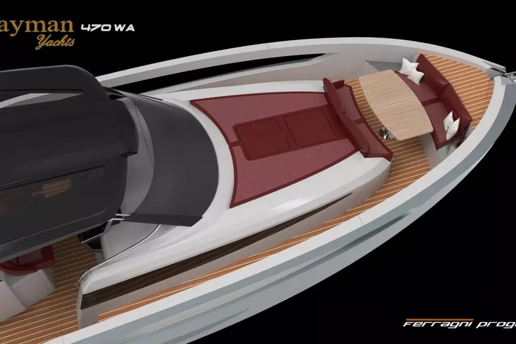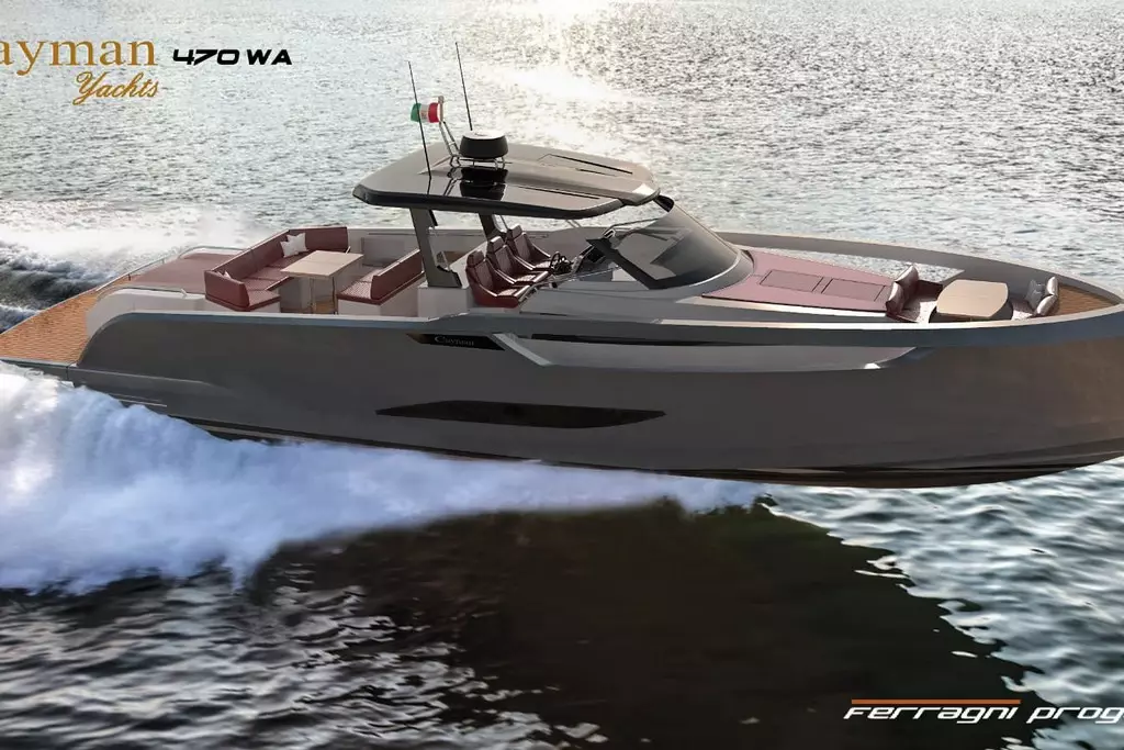 The Cayman 470WA is the perfect balance between the 400WA & 540WA. Offering spacious room for entertaining with stunning design from the Ferragni creative studio, she ticks all the right boxes from practicality to style. Available in a huge range of specifications including outboard engines, this yacht can be configured to your every need.
